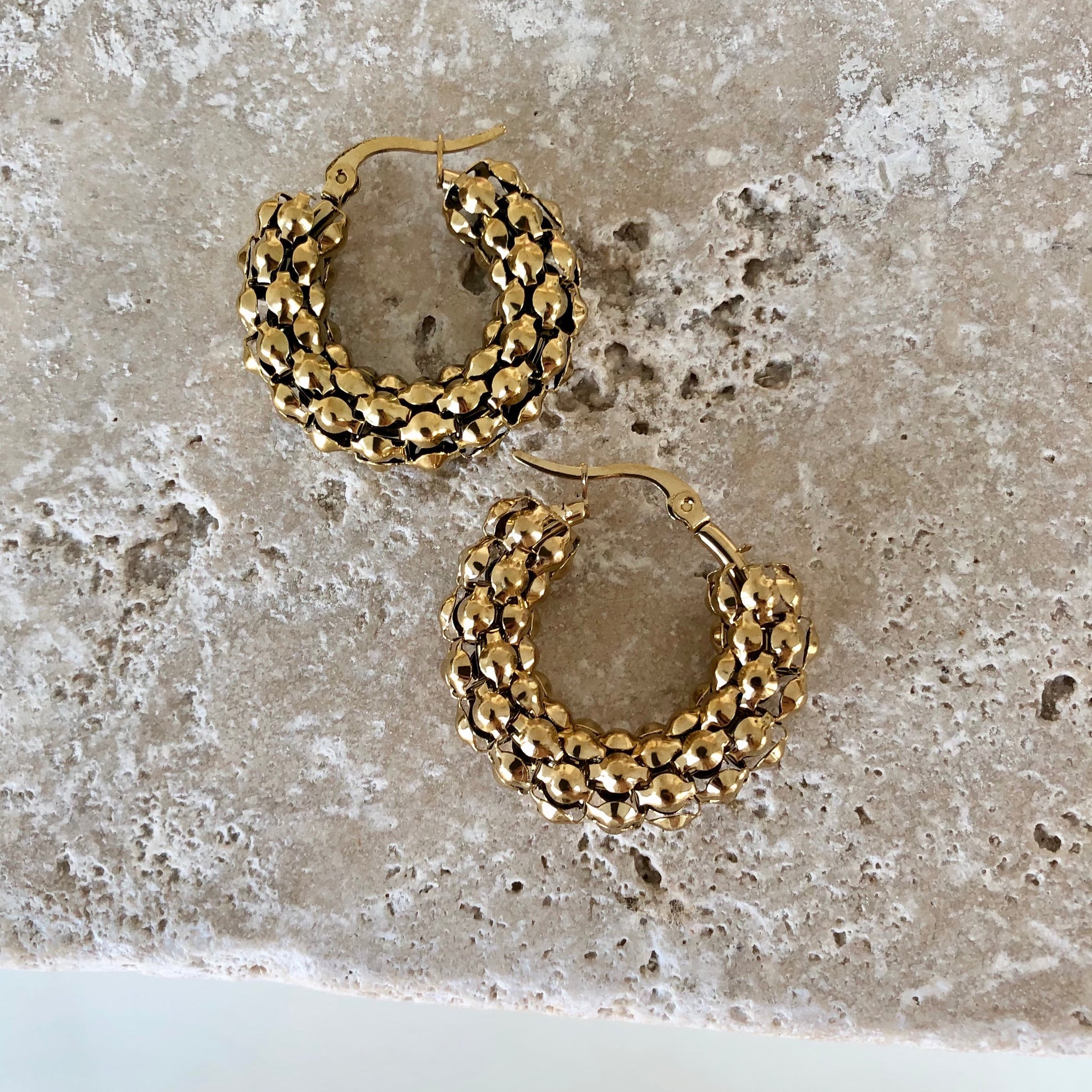 Des créoles élégantes et intemporelles, idéales pour parfaire sa tenue d'une touche ethnique et chic à la fois. On les aime autant à porter en journée qu'en soirée. Ces jolies boucles d'oreilles sont martelées et légèrement ajourées. Légères à porter, elles sont en acier inoxydable et résistent à l'eau douce ainsi qu'à l'eau salée. Vous pouvez donc les porter au quotidien.