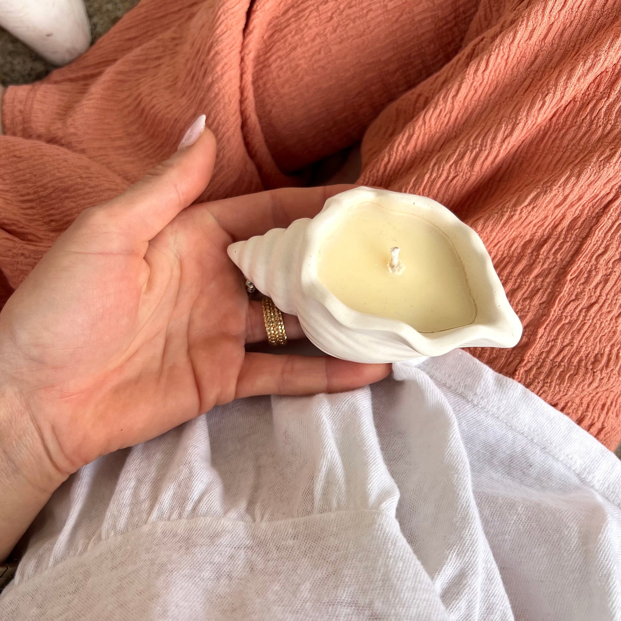 Nos bougies en cire de soja sont coulées dans un coquillage moulé à la main.