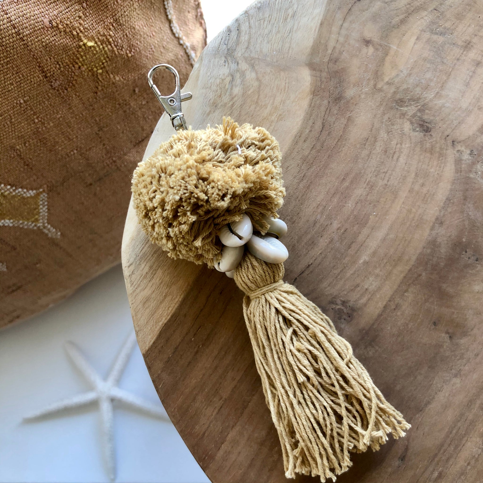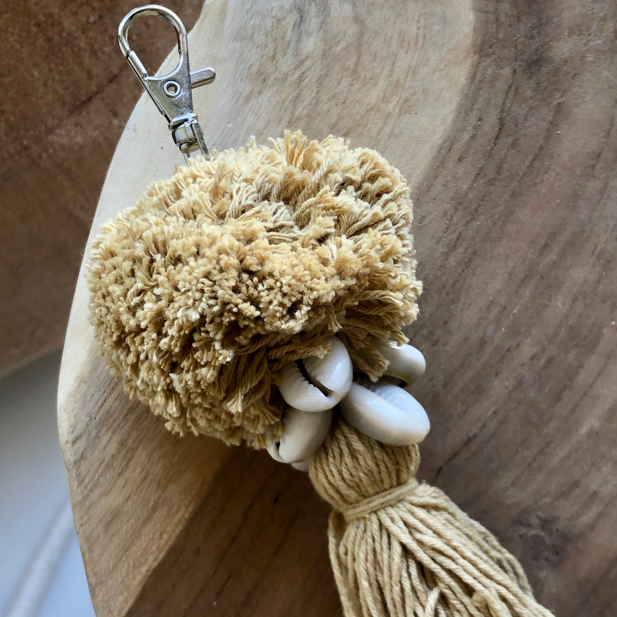 Porte-clés pompon crème et coquillage